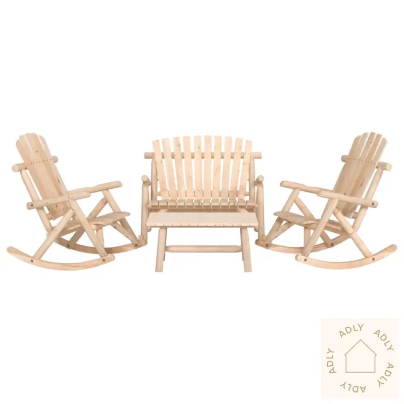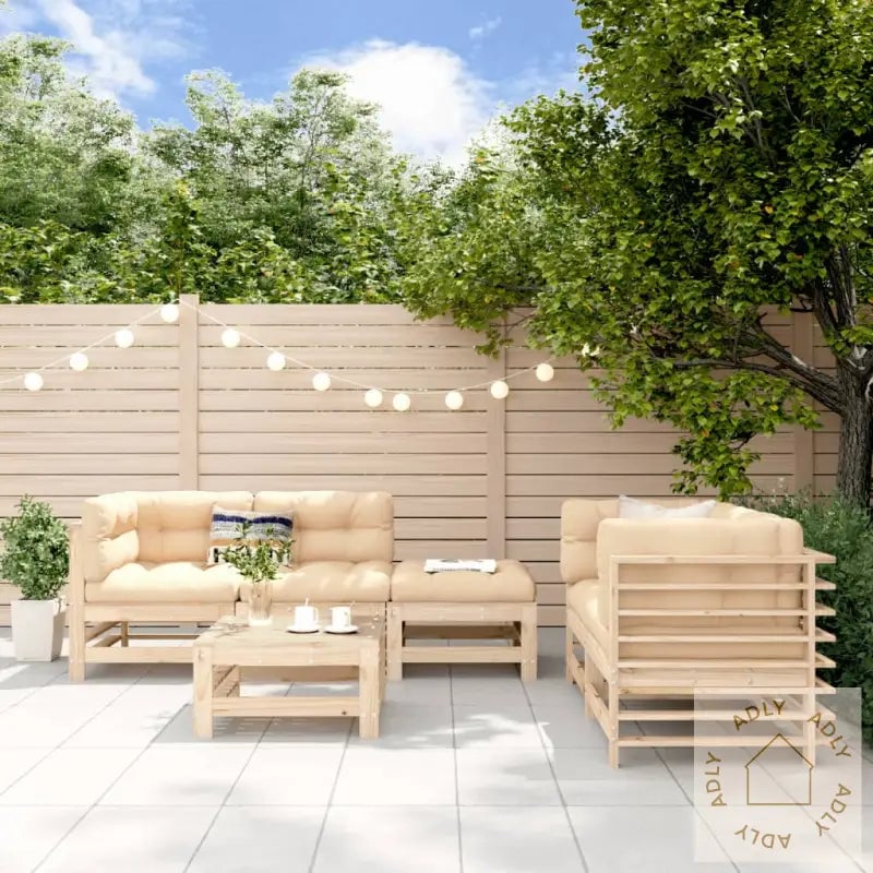 Hagemøbelsett i heltre furu med salongbord fotskammel moderne stil