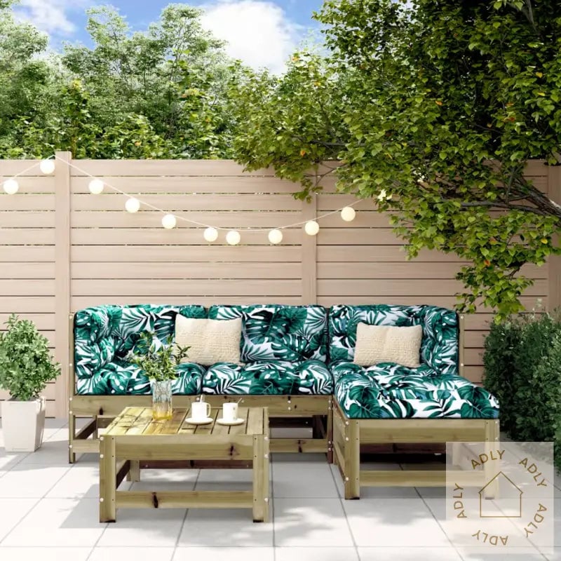 Hagemøbelsett i heltre furu med lamelldesign til uteplassen