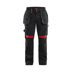 Håndverksbukse i 4-veisstretch Svart/Rød
