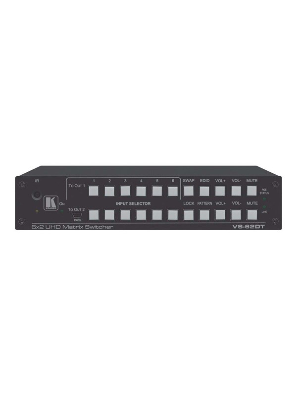 Kramer Vs-62Dt 6X2 4K60 4:2:0 Hdmi/Hdbaset Long-Reach Poe Matrix Switcher - Video/Audio Switch - Stasjonær, Rackmonterbar