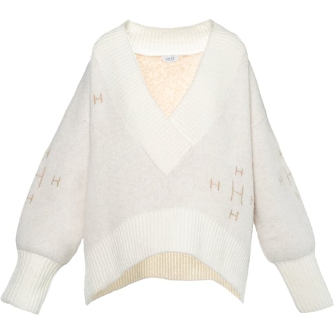 Fam V-Neck Sweater - White Alyssum