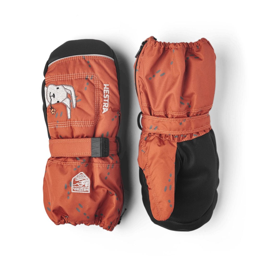 Hestra Baby Zip Long mitt - orange print - 2