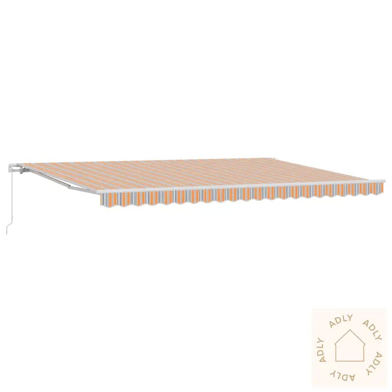 Uttrekkbar markise i oransje og hvitt til hage og hjem