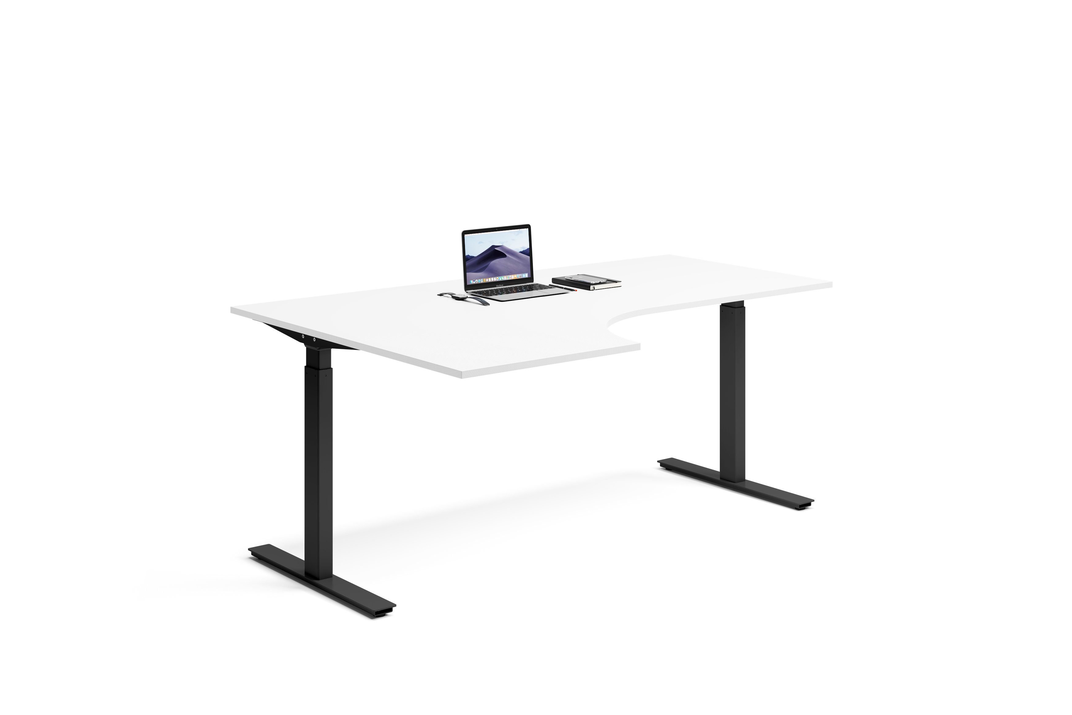 Lanab Group Hjørneskrivebord Venstre 180x120x80cm - Ergofunk Smart 670-1170 mm (slaglengde 500 mm) Färg på stativ: Svart bordsskiva: Hvit