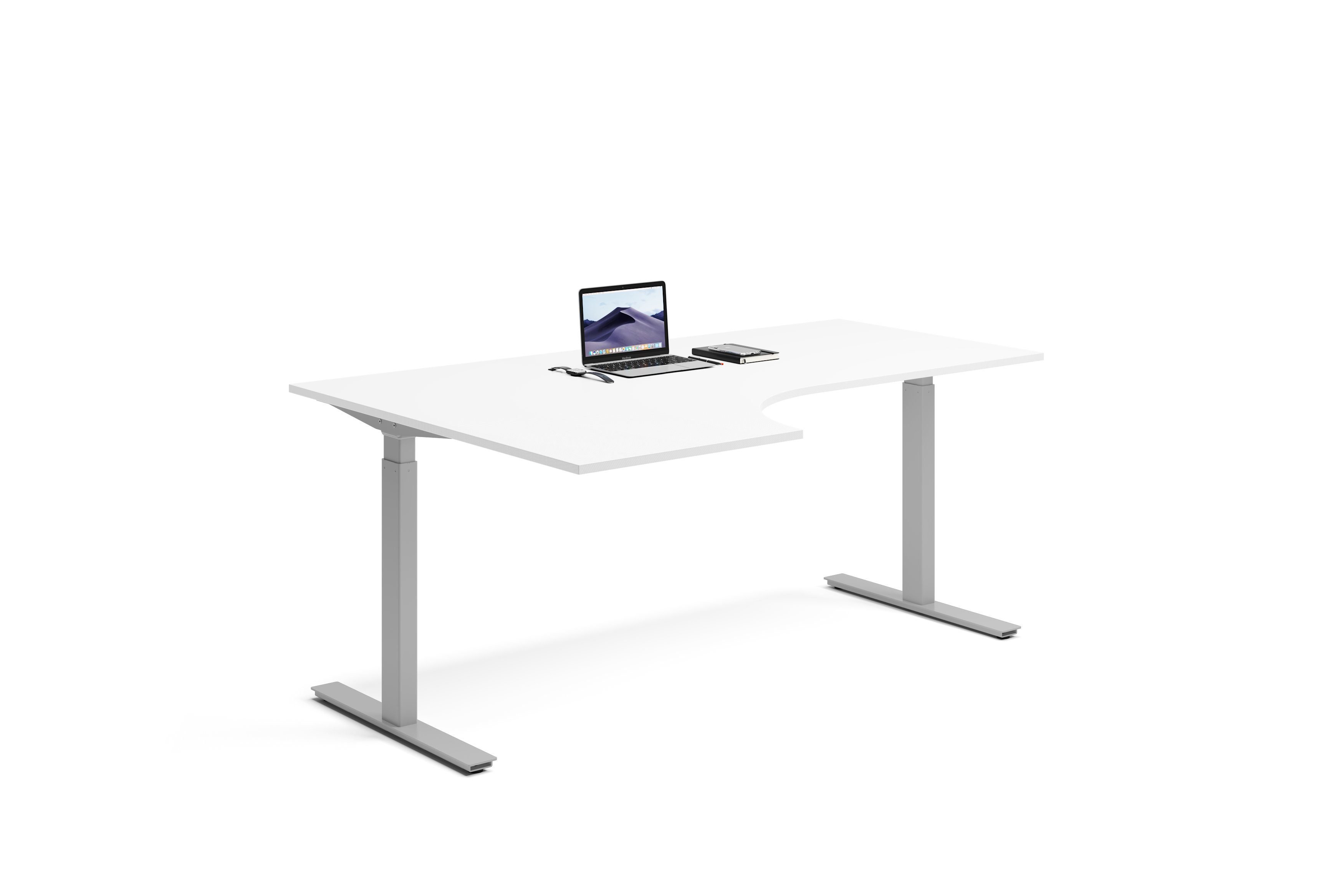 Lanab Group Hjørneskrivebord Høyre 200x120x80cm - Ergofunk Smart 670-1170 mm (slaglengde 500 mm) Färg på stativ: Sølvgrå bordsskiva: Hvit
