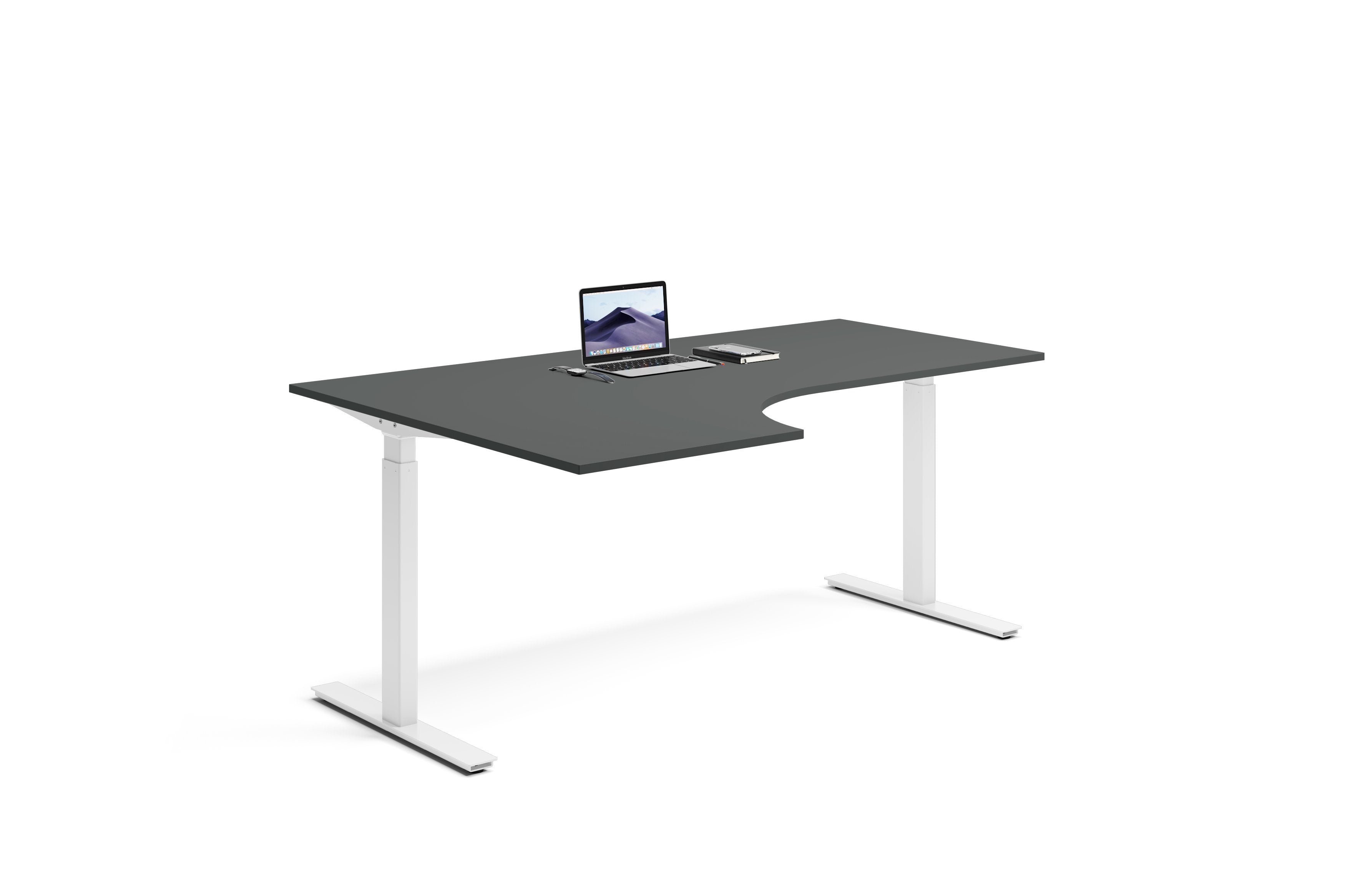 Lanab Group Hjørneskrivebord Høyre Hjørne 160x120x80cm - Ergofunk Smart 670-1170 mm (slaglengde 500 mm) Färg på stativ: Hvit bordsskiva: Mørkgrå
