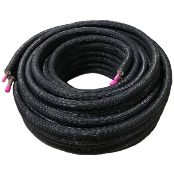 Kobberrør Preisolert 1/4x3/8 parvise rør i kveil 20m Sort