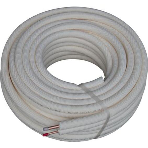 Kobberrør Preisolert 1/4x3/8 parvise rør i kveil 20m Hvit