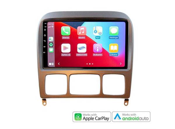 Hardstone 9" Apple CarPlay/Android Auto MB S-klasse 1999-2003 u/aktivt høyttalersystem