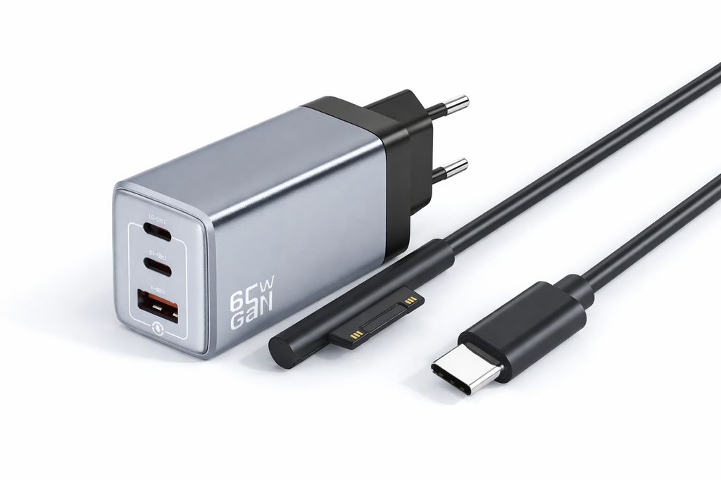 LC-Power LC-GAN-65 GaN 3-porters Hurtiglader med USB-A og 2x USB-C Kabel 65W