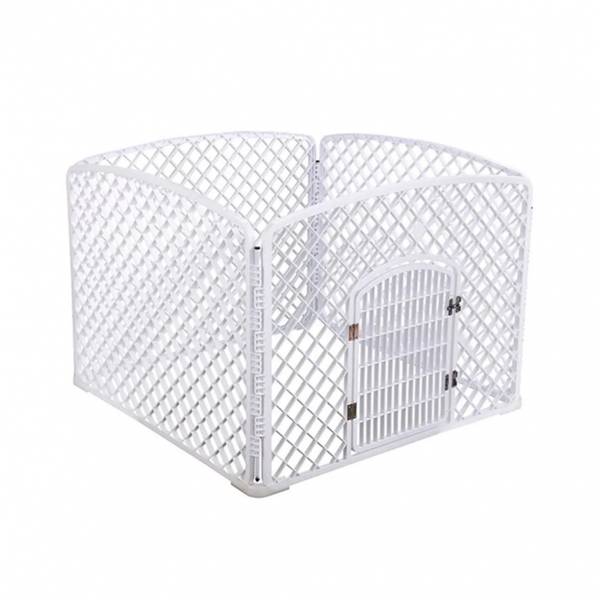 Hvit firkantet hundegård i plast, 96 x 96 x 75 cm