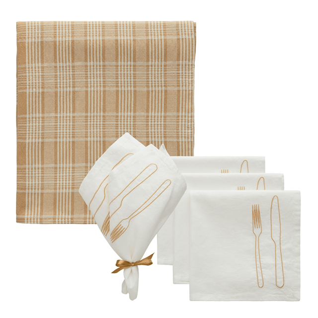 La Tavola / Rita Tekstilsett 4 Servietter + Duk, Hvit / Beige / Latte