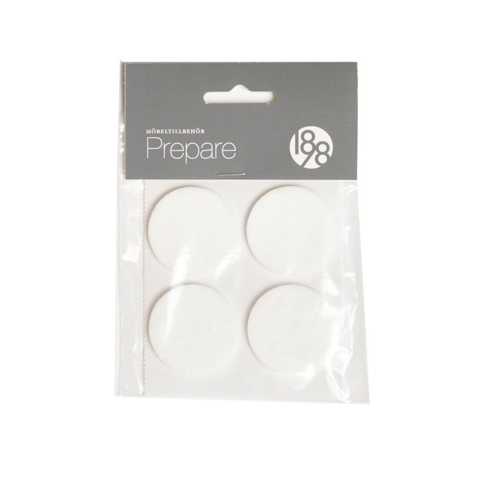 1898 Prepare møbelknotter hvit, selvklebende filt, ø 38 mm, 4 stk.