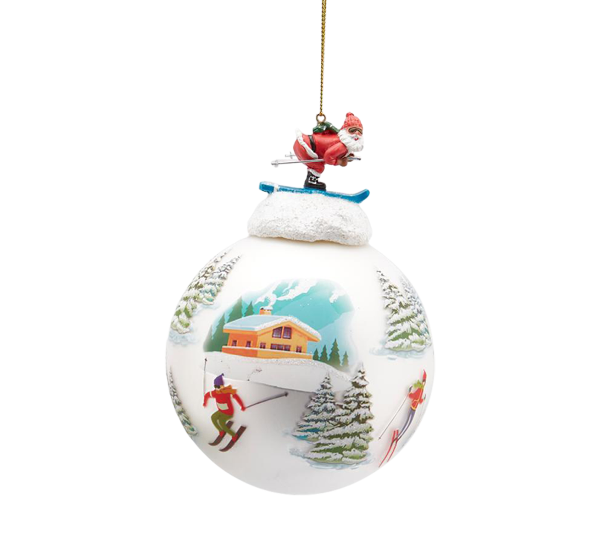 Julekule ø10 cm hvit Julenisse på ski