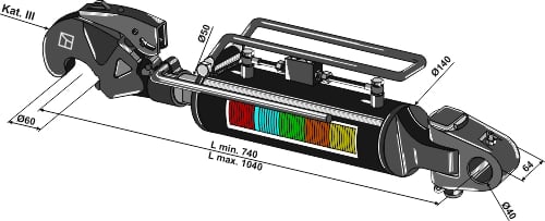 Hydraulisk toppstag m/krok Category III, lengde 740-1040 mm