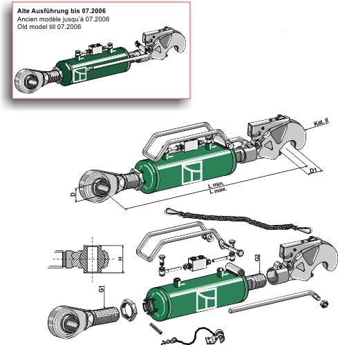 Hydraulisk toppstag med krok 95: 745, 96: 970, IV