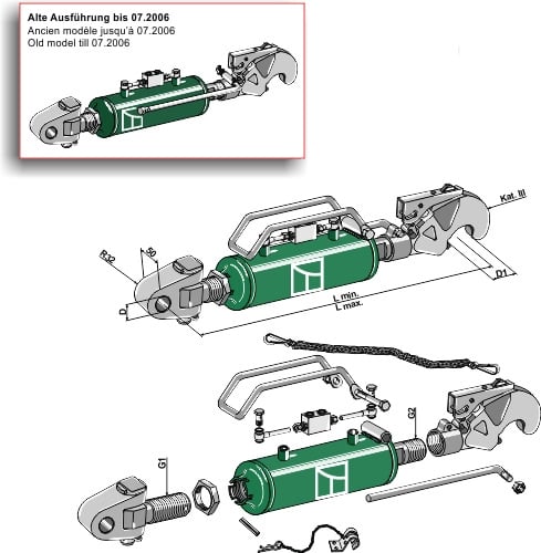 Hydraulisk toppstag med krok Kategori IV-III, 95: 687, 96: 912