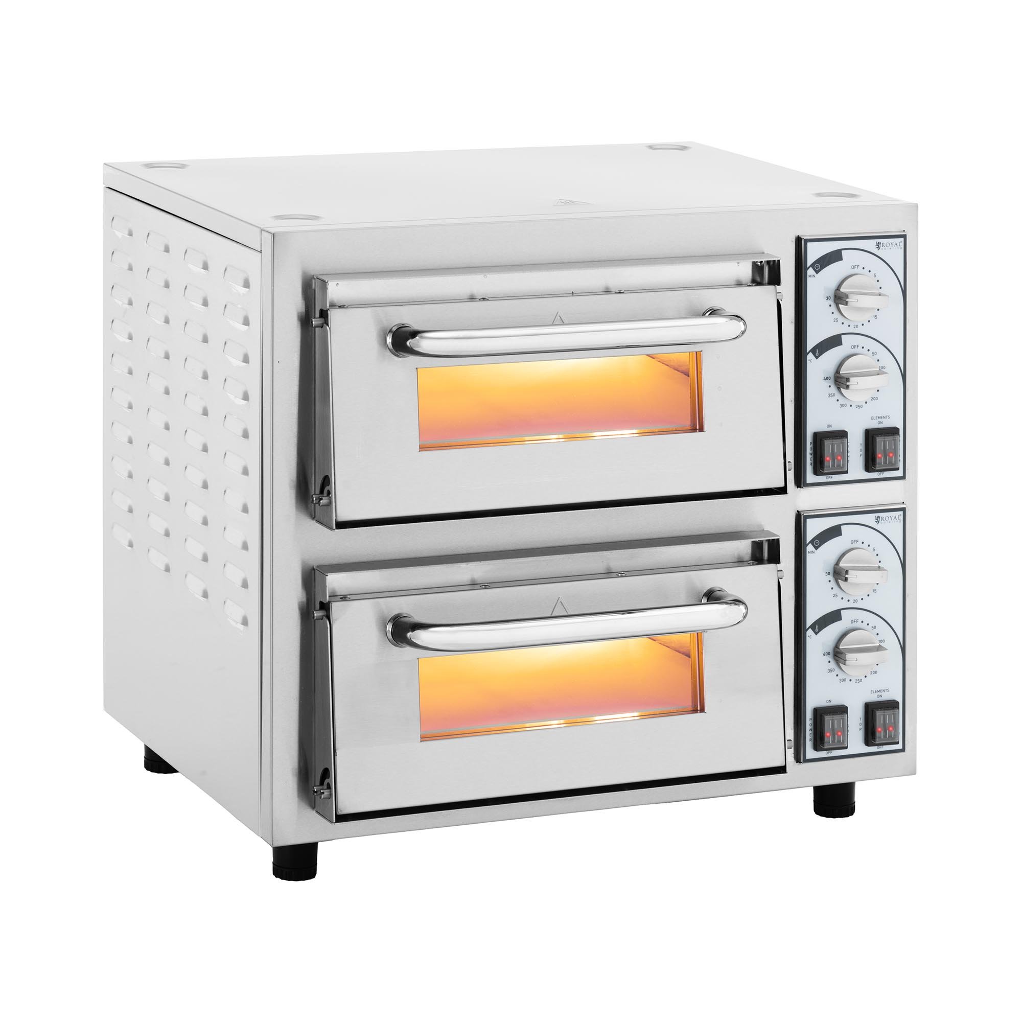 Royal Catering Pizzaovn - 2 kammer 4400 W Ø 35 cm ildfast stein