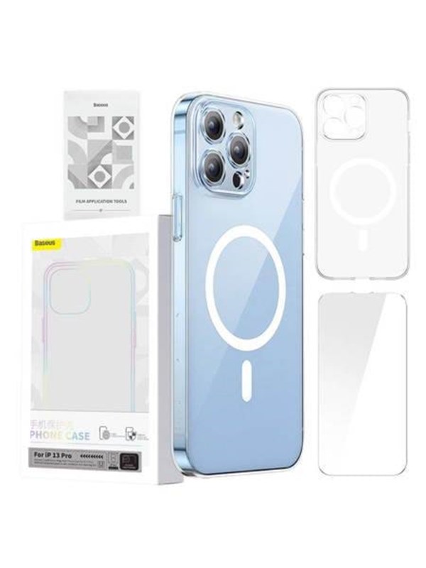 Baseus Magnetic Crystal Clear for iPhone 13 Pro (transparent) with all-tempered-glass screen protector and cleaning kit