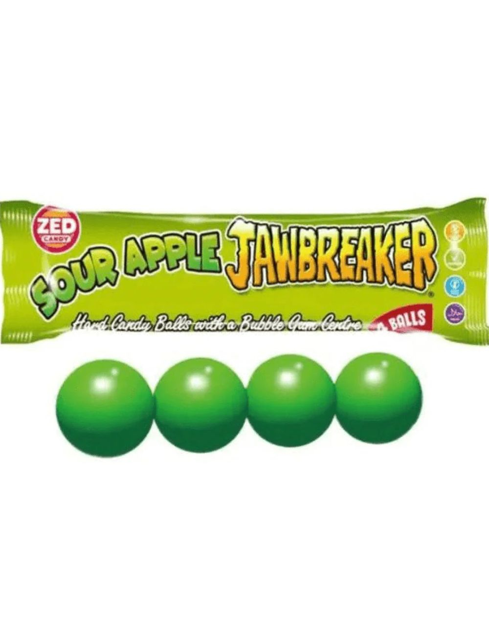 4-pk Zed Jawbreaker med Smak av Surt Eple og Kjerne av Tyggegummi 33 g