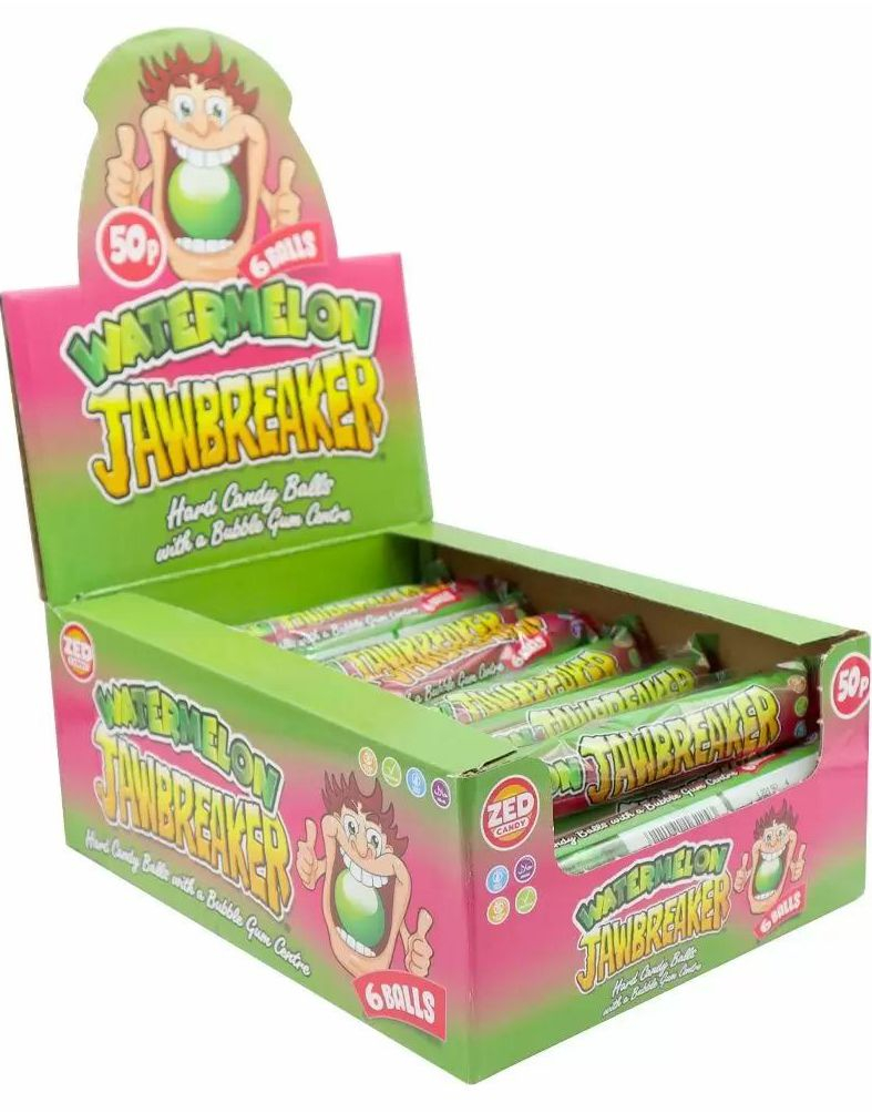 24 stk 6-pk Zed Jawbreaker med Vannmelonsmak og Kjerne av Tyggegummi - Hel Eske 1,18 kg