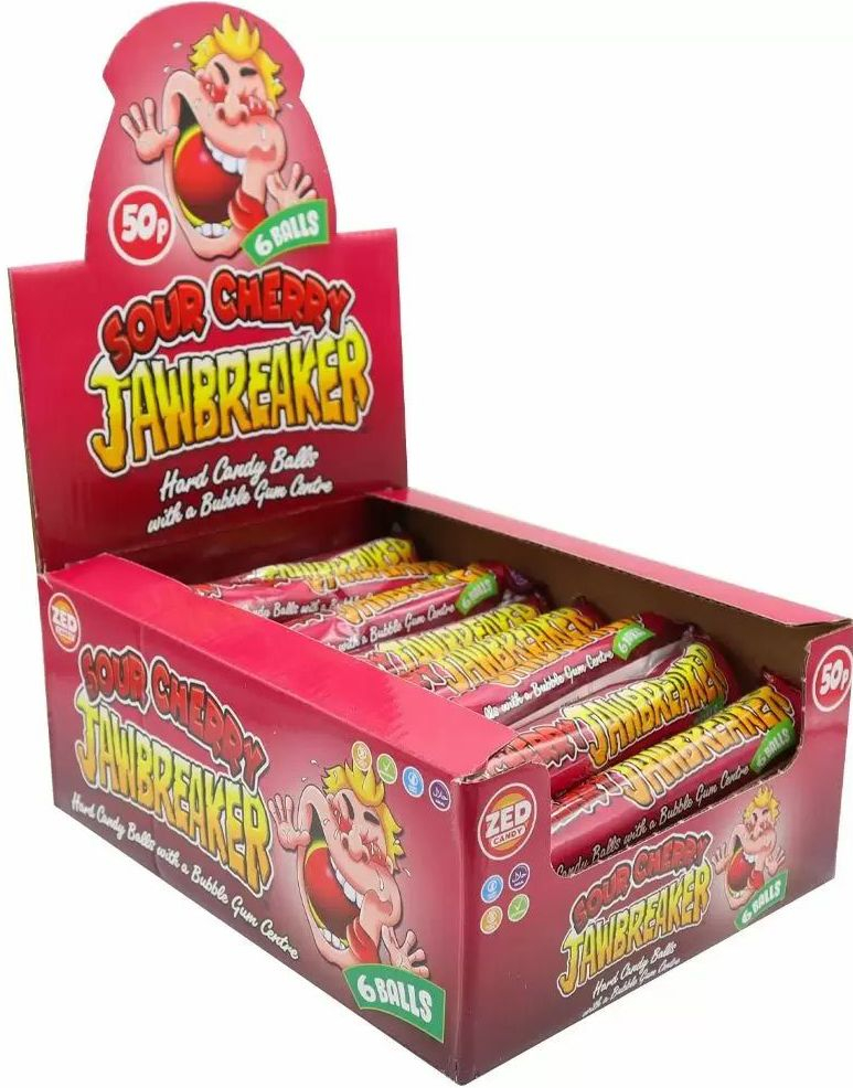 24 stk 6-pk Zed Jawbreaker med Sour Cherry Smak og Kjerne av Tyggegummi - Hel Eske