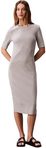 Calvin Klein Jeans Hs 1X1 Raffinert Bomullsribbet Midi Kjole