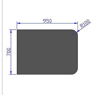 Gulvplate sort 100 mm radius 700x950 mm
