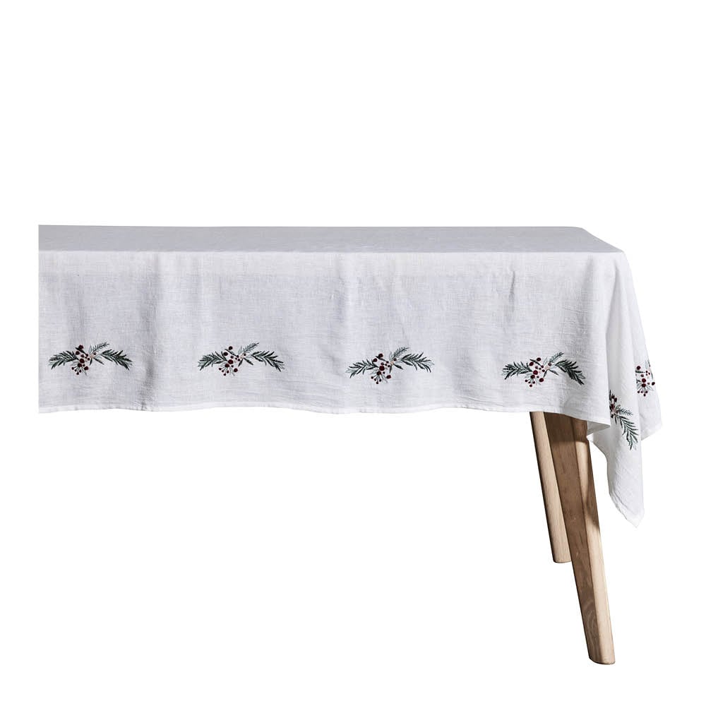 Langkilde & Søn - Juleduk med broderte motiver 240x140 cm hvit