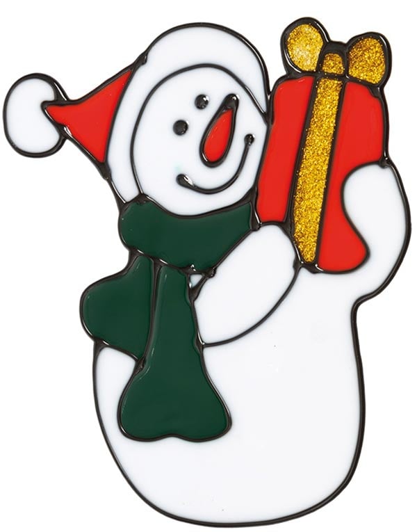 Snømann med Julegave - Vindusdekorasjon 14x13 cm