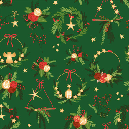 Bomullspoplin Stoff 145cm 025 - Grønn med julekranser