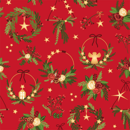 Bomullspoplin Stoff 145cm 015 - Rød med julekranser