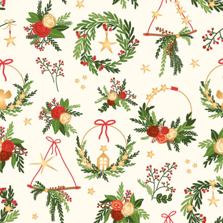 Bomullspoplin Stoff 145cm 051 - Beige med julekranser
