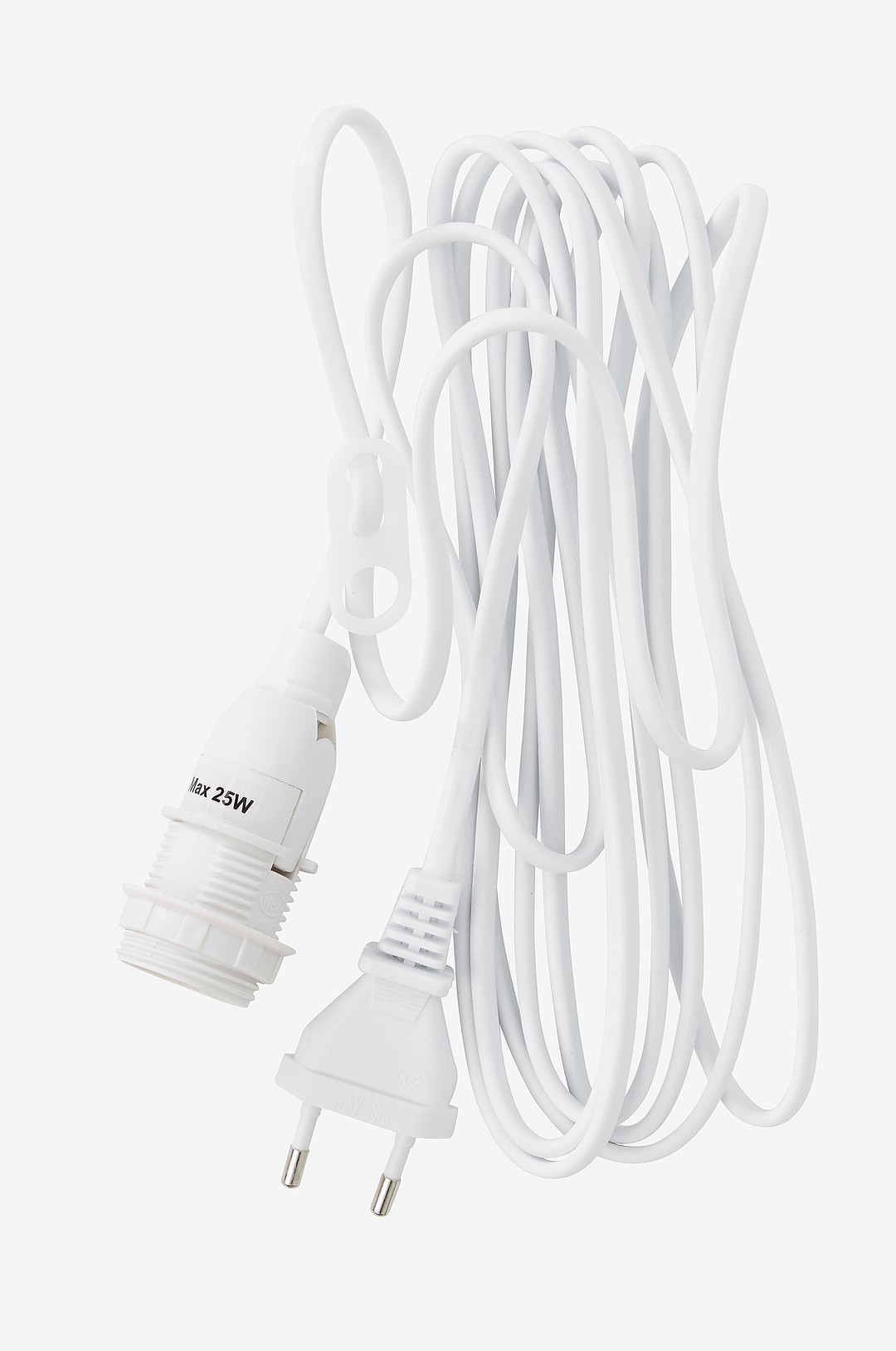Oppheng til julestjerne, E14, 350 cm hvit plastledning, med eurostøpsel