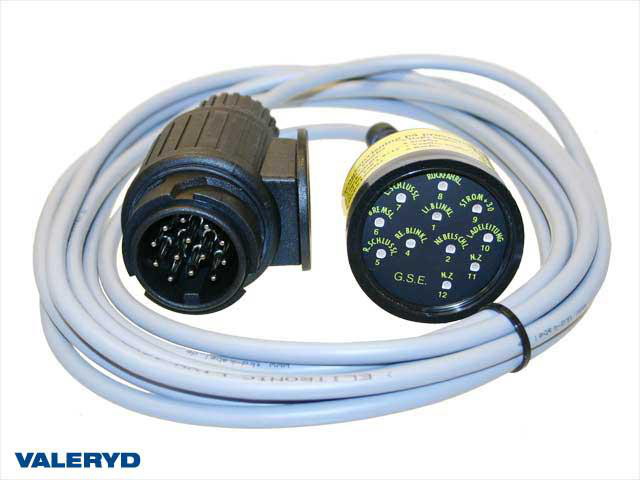Tester for tilhengerkontakt 13-ledere 4m kabel m diodlamper (Virker ik