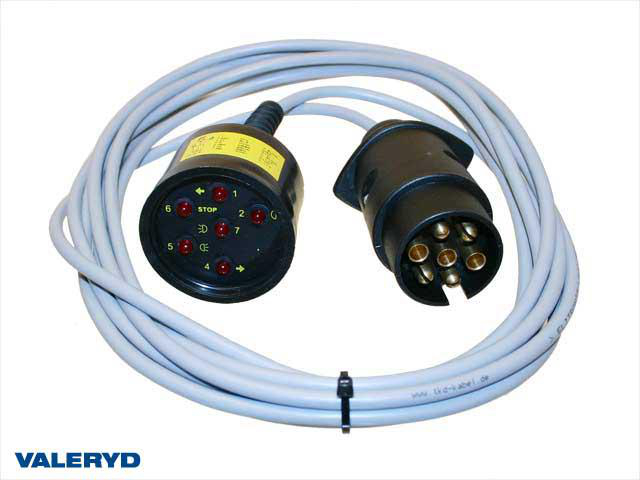 Tester for tilhengerkontakt 7-ledere, 4m kabel m diodlamper (Virker ik