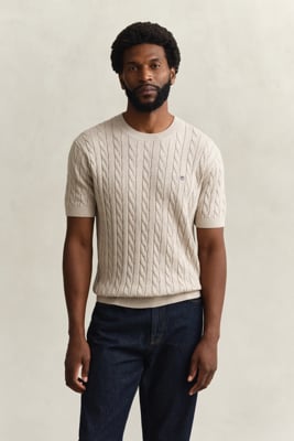 GANT - Kortermet genser i kabelstrikket bomull til herre oat melange