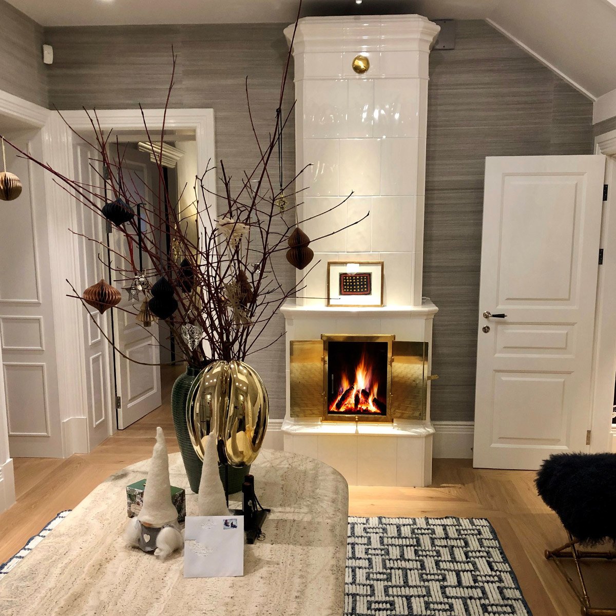 Drottningholm hvit rund kakkelovn med glassdør