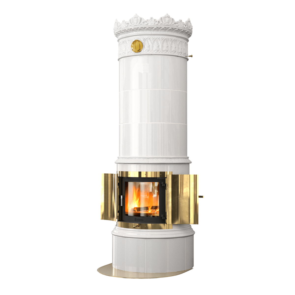 Gabriel hvit rund kakkelovn med glassdør