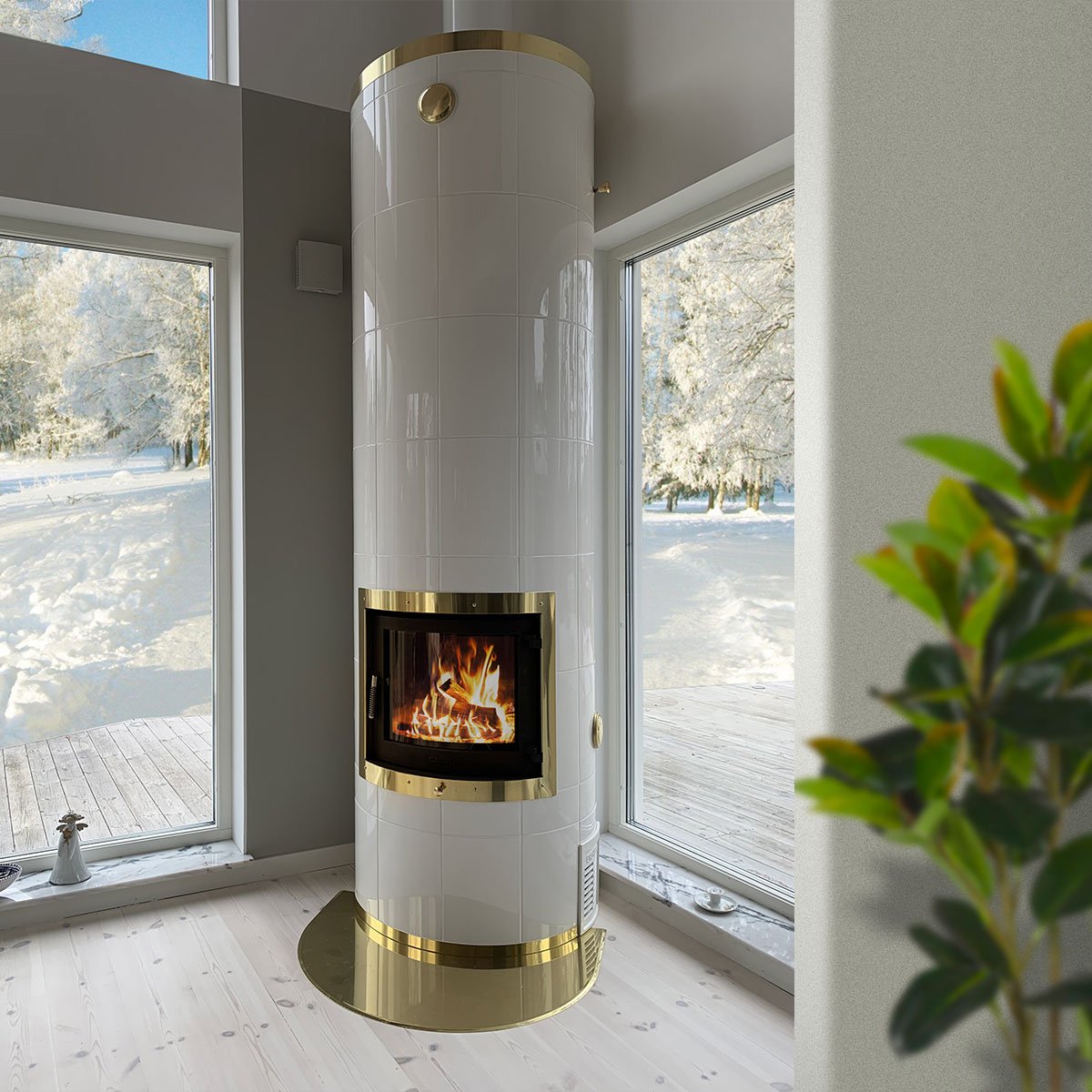 Studio 2 hvit moderne kakkelovn med glassdør