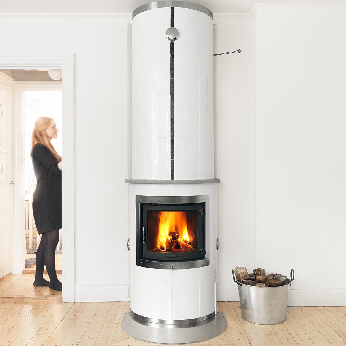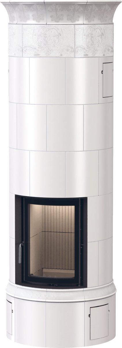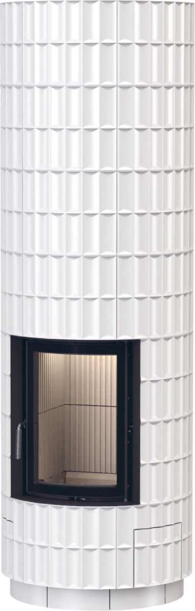 Tillinge hvit rund kakkelovn med glassdør