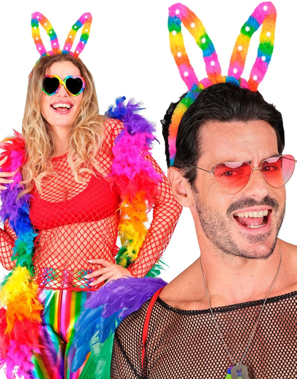 Lysende Regnbue Kaninører - Med Tre Lysmoduser