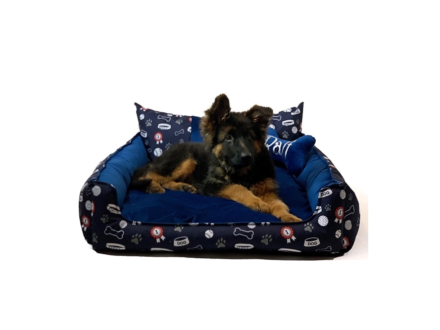 Homea Hunde- Og Katteseng Med Avtagbar Chic Pute, Ø 48 Cm, Marineblå Og Gul Med Påskrift