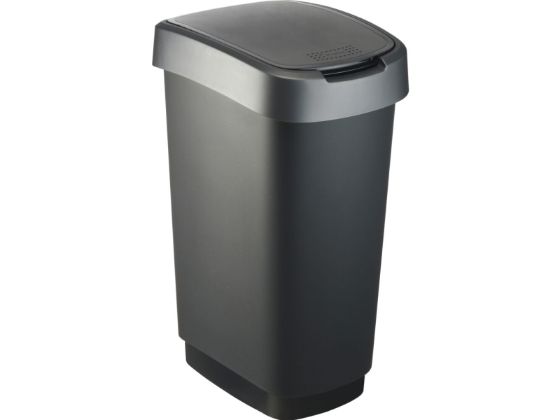 Affaldsspand, Rotho Twist, Sort, Plast, 50 L, Sort Låg Med Grå Kant, Til Kildesortering