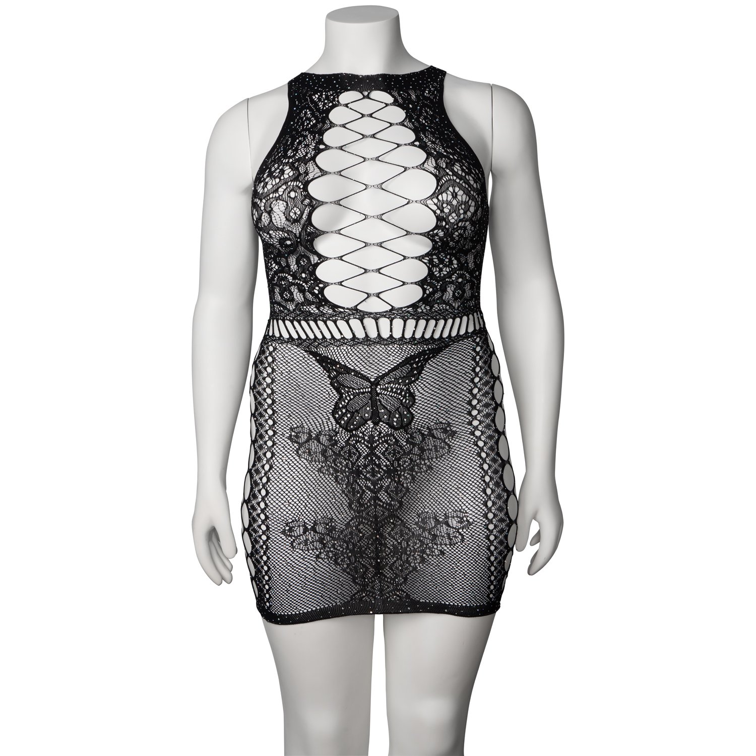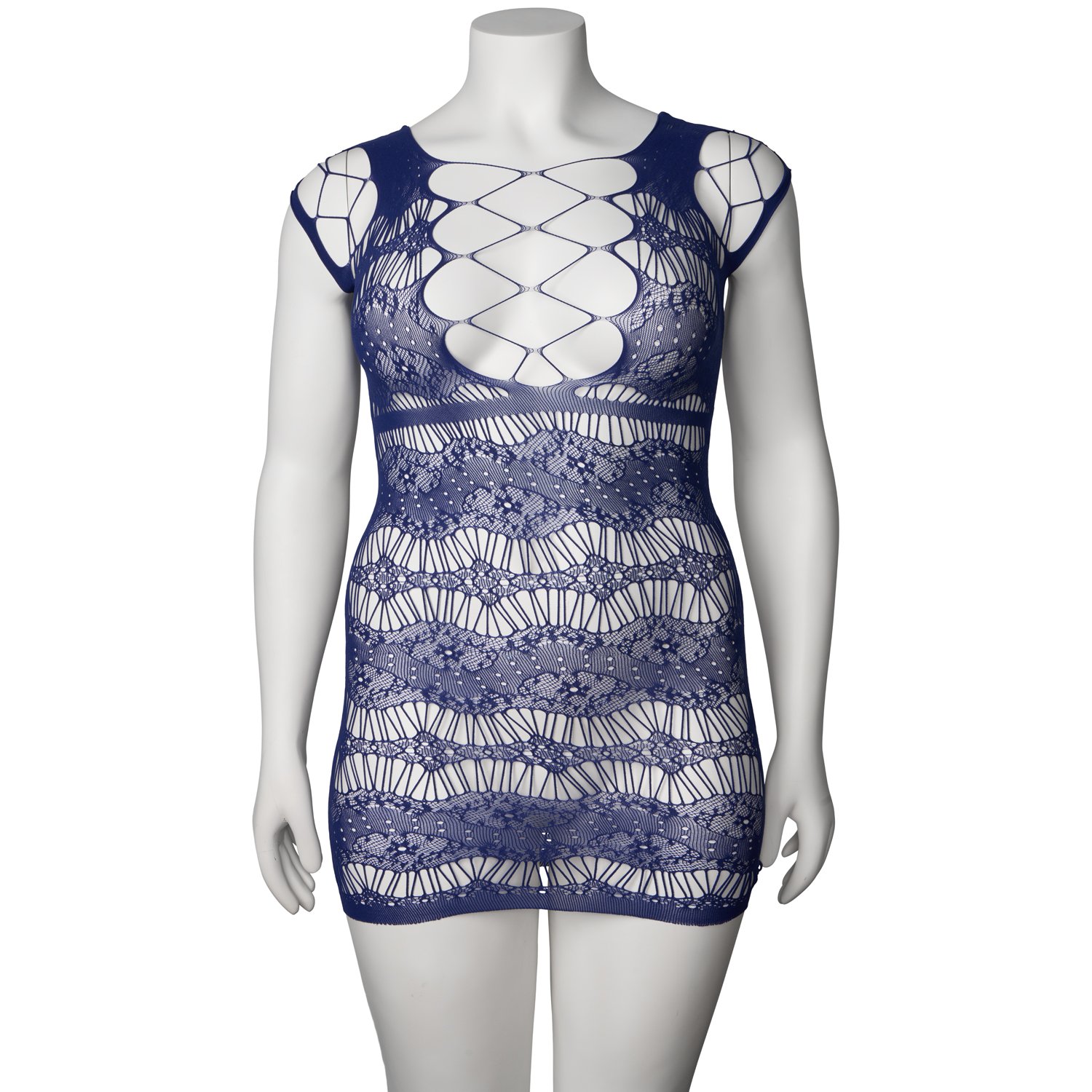 Plus Size Langermet Nettingkjole Svart, Forførende Kjole fra Leg Avenue