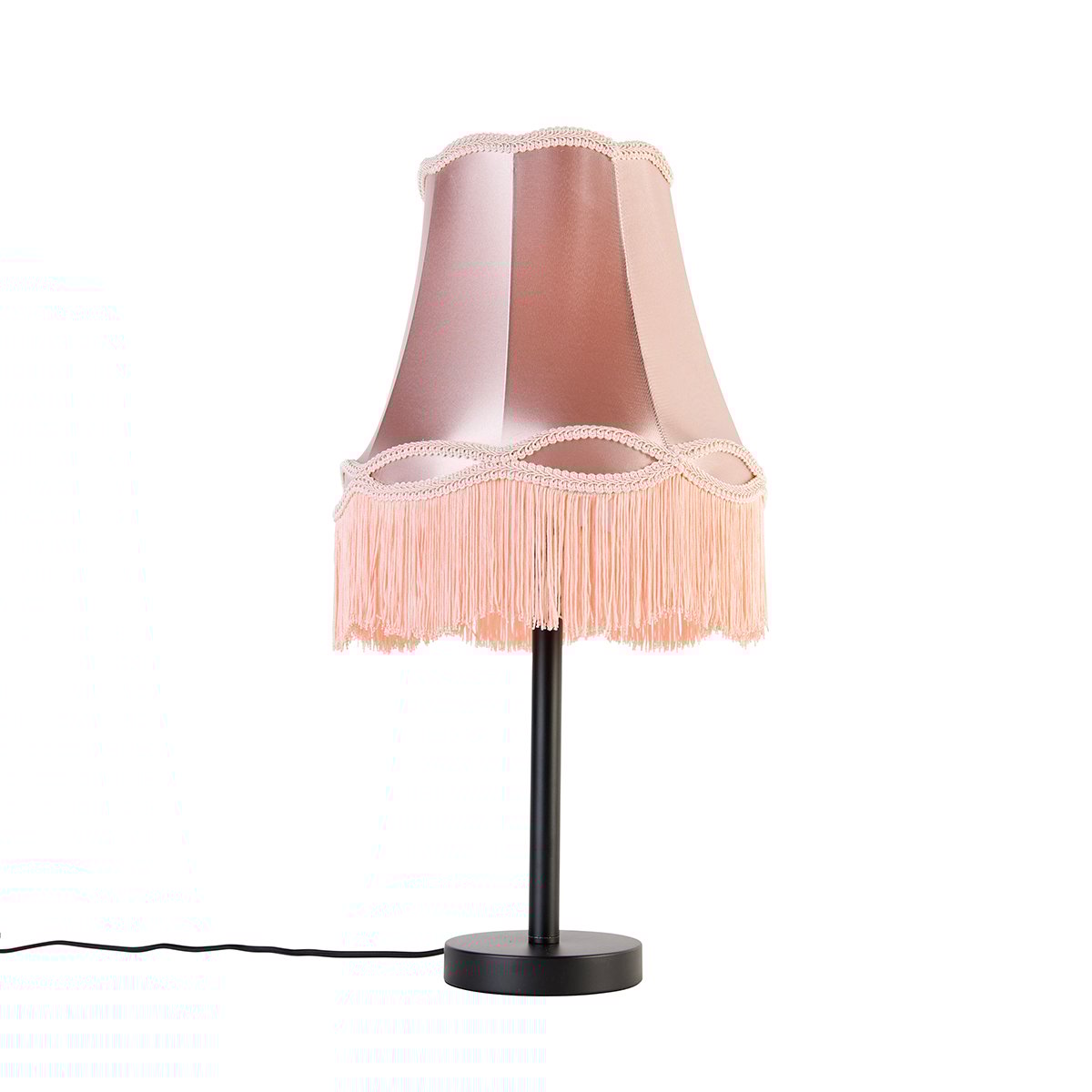 Klassisk bordlampe svart med bestemorskjerm rosa 30 cm - Simplo