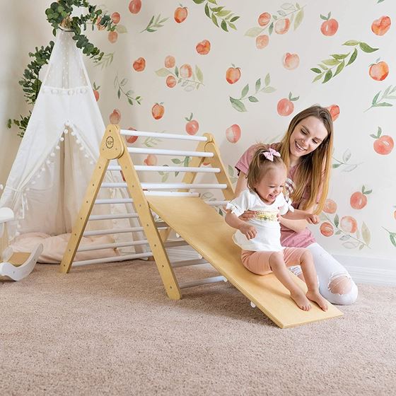 3 i 1 klatreleke / klatrestativ / Pikler-trekant / klatrebue / rampe / sklie