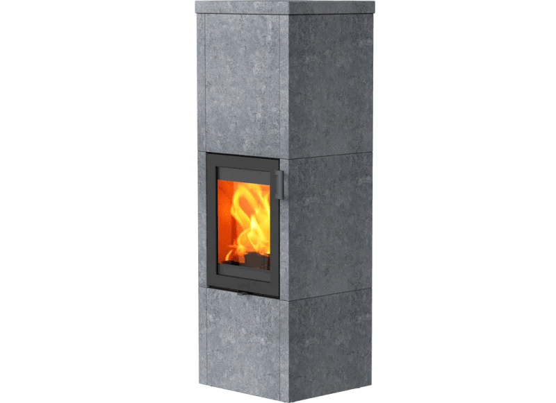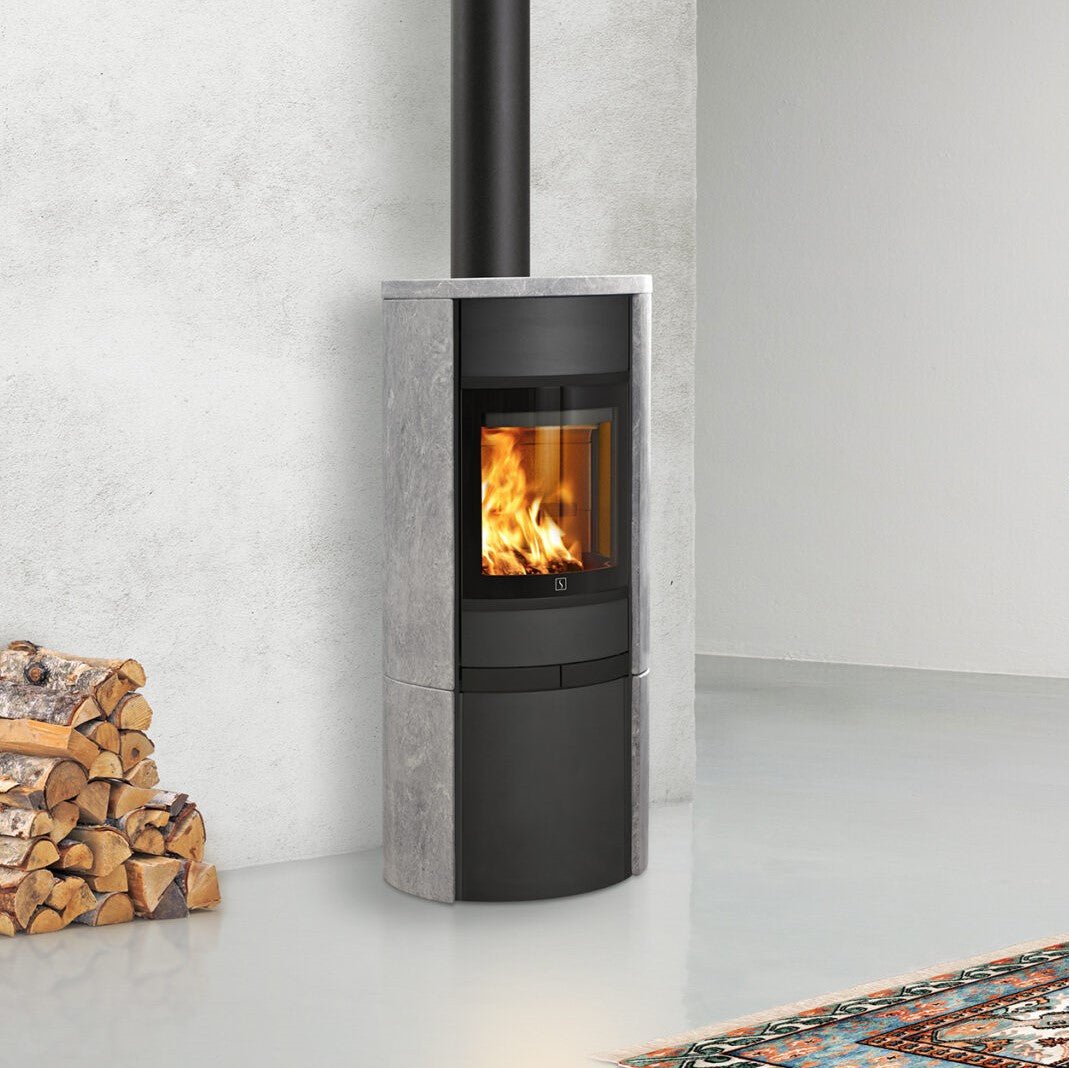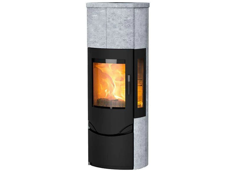 TT21RS HeatStorage Matt - svart vedovn med støpejernsdør og kappe av lys kleberstein