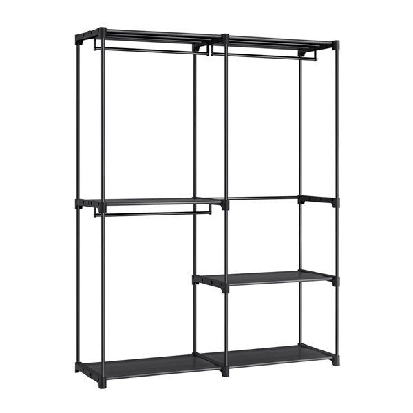 Stabilt Klesstativ med Frittstående Design - Tre Klesskinner og Tre Hyller