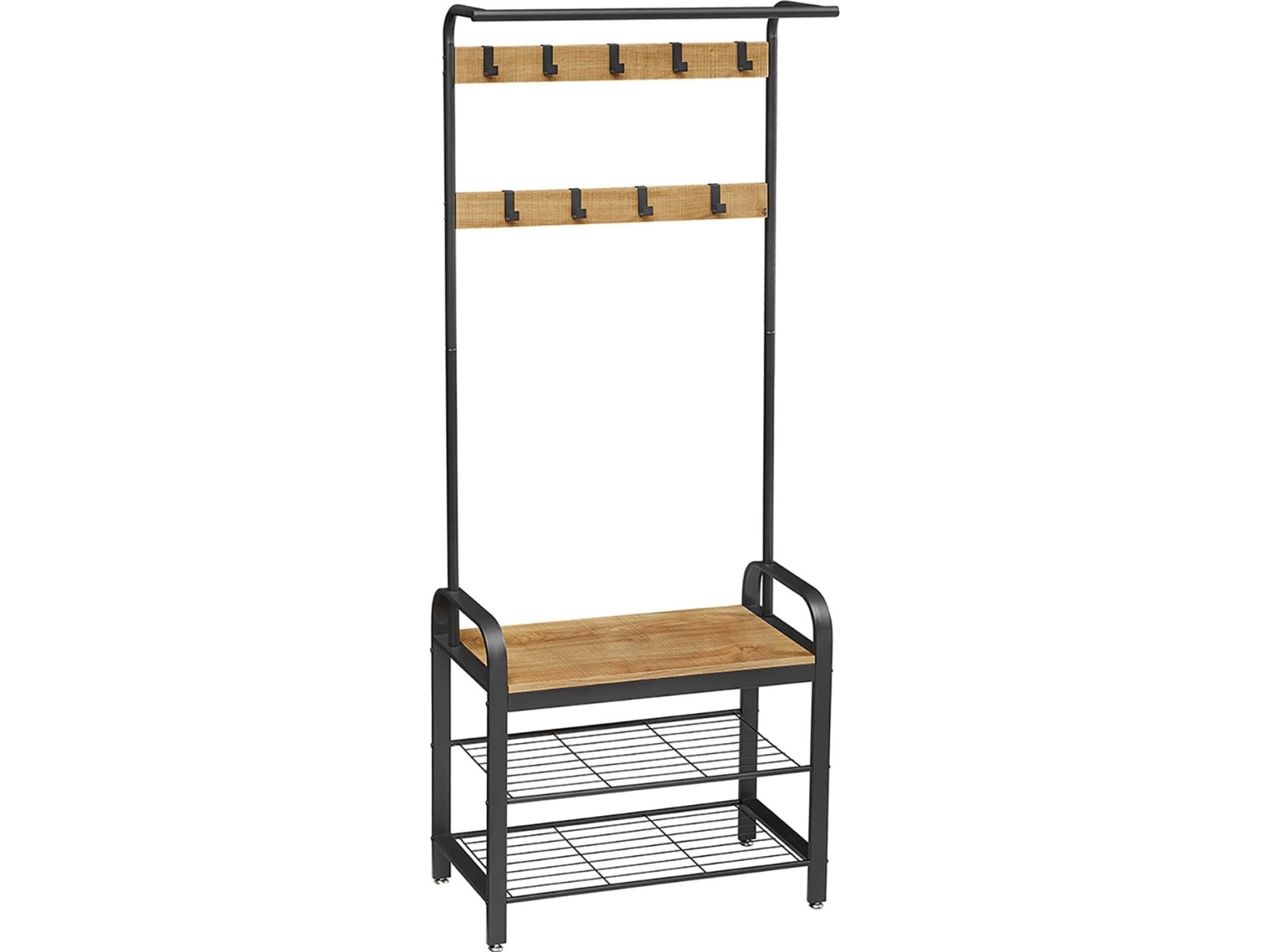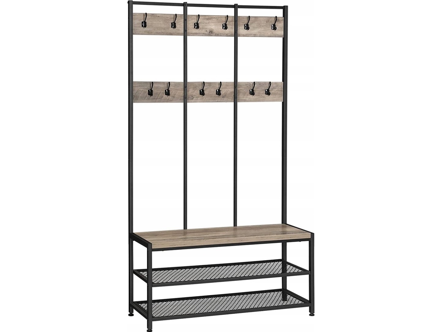 Vasagle Stort Klesstativ, Klesstativ Med 12 Kroker Og Skobenk I Industriell Stil, Tre Til Hall, Multifu